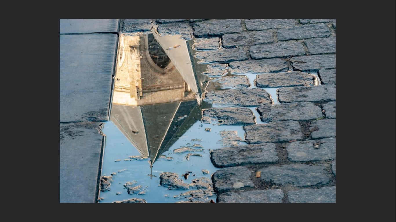 In this example, I’m working with a wider architectural scene, and the subject is a church. The standout feature was a sweep of rooftops on the right-hand side of the church that immediately caught my eye. Obviously the church dome caught my eye too! Bit compositionally the surrounding areas combined to create the ‘moment of inspiration’.