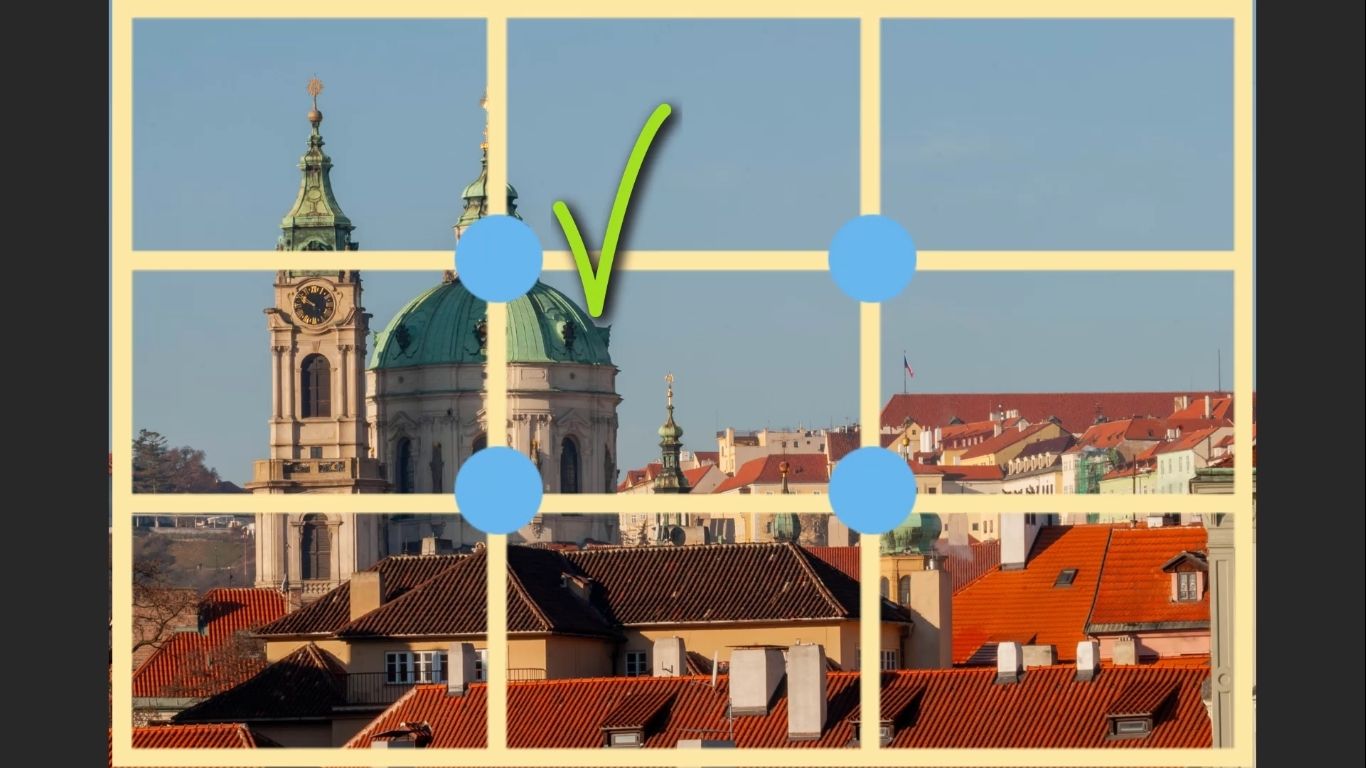 - Placed the church dome on or near a rule of thirds intersection point.