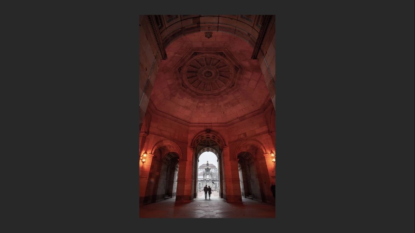 - The arch at the top of the frame, which naturally framed the whole composition.