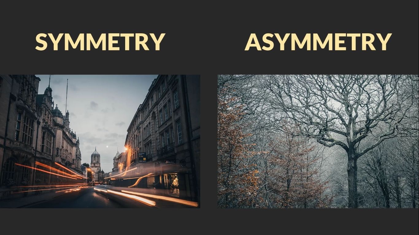 - The background has unequal weight, where the left side is significantly different to the right.